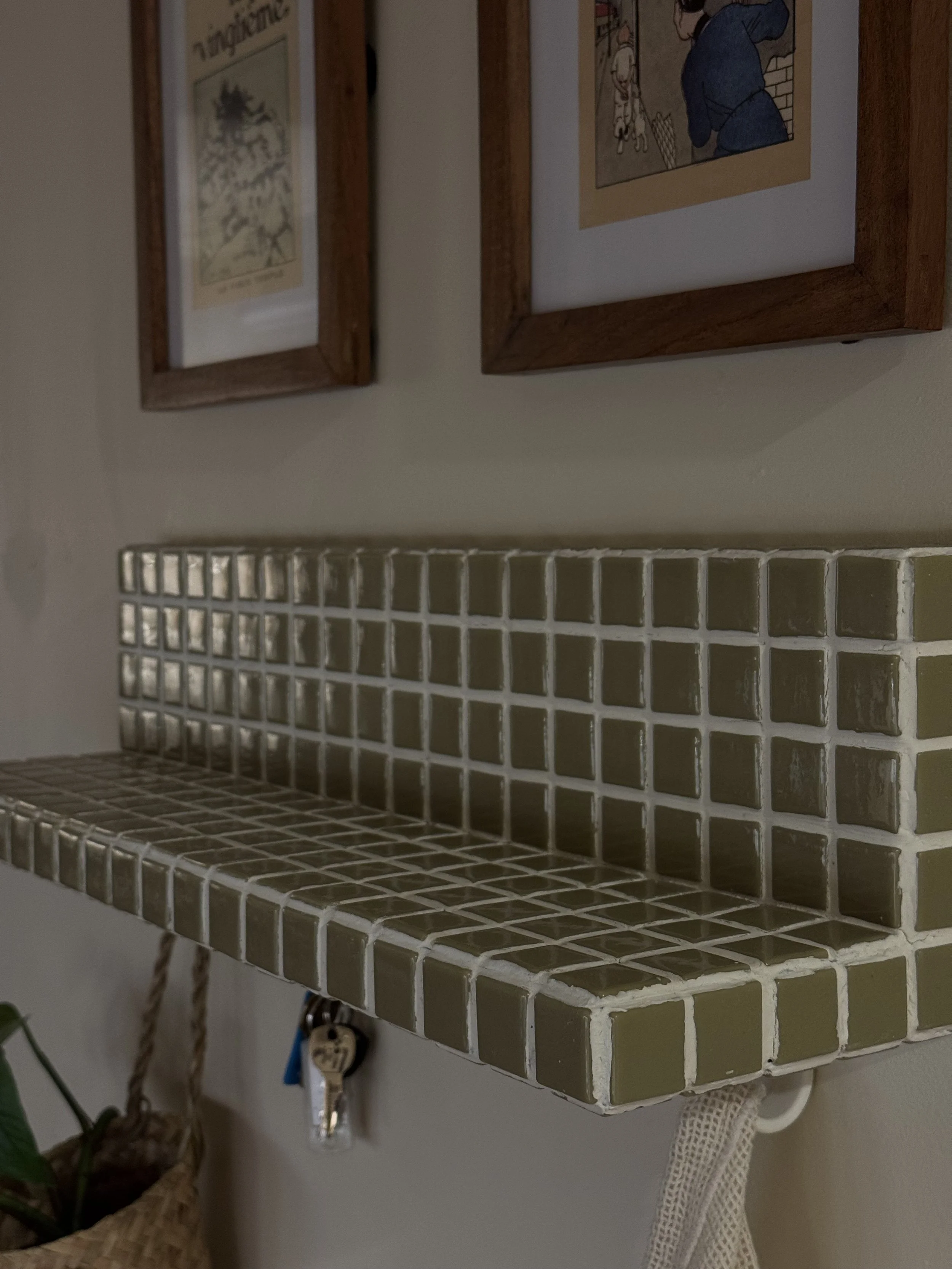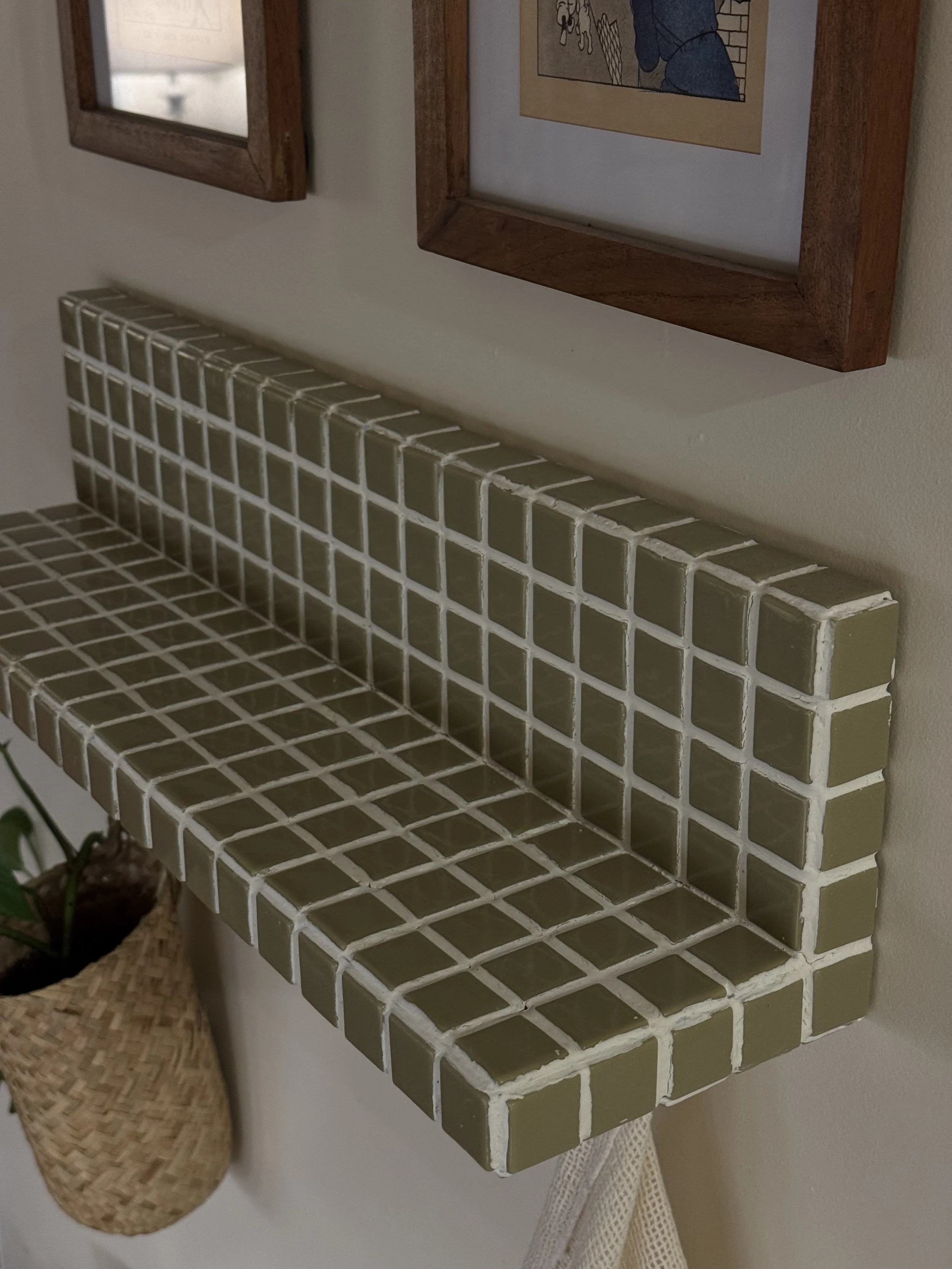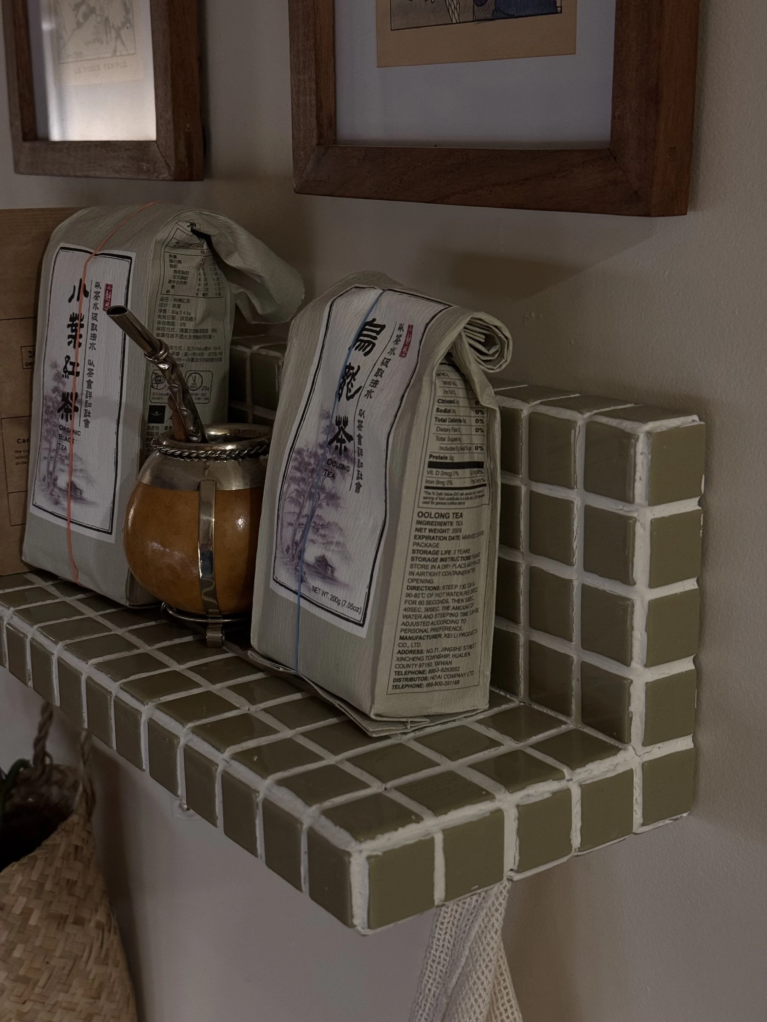The tile shelf is a design inspired by some designs I saw online, but built custom for my own space.