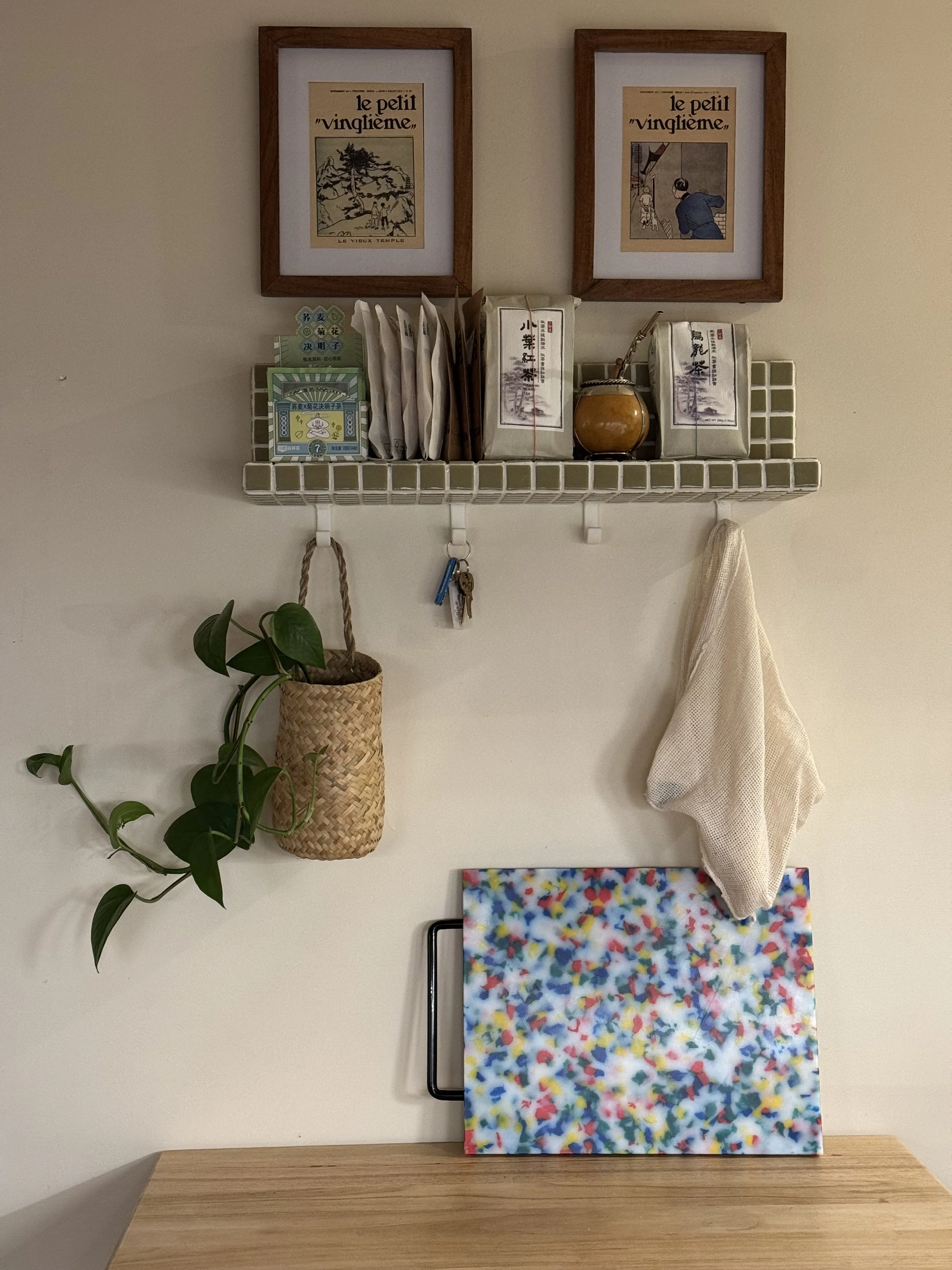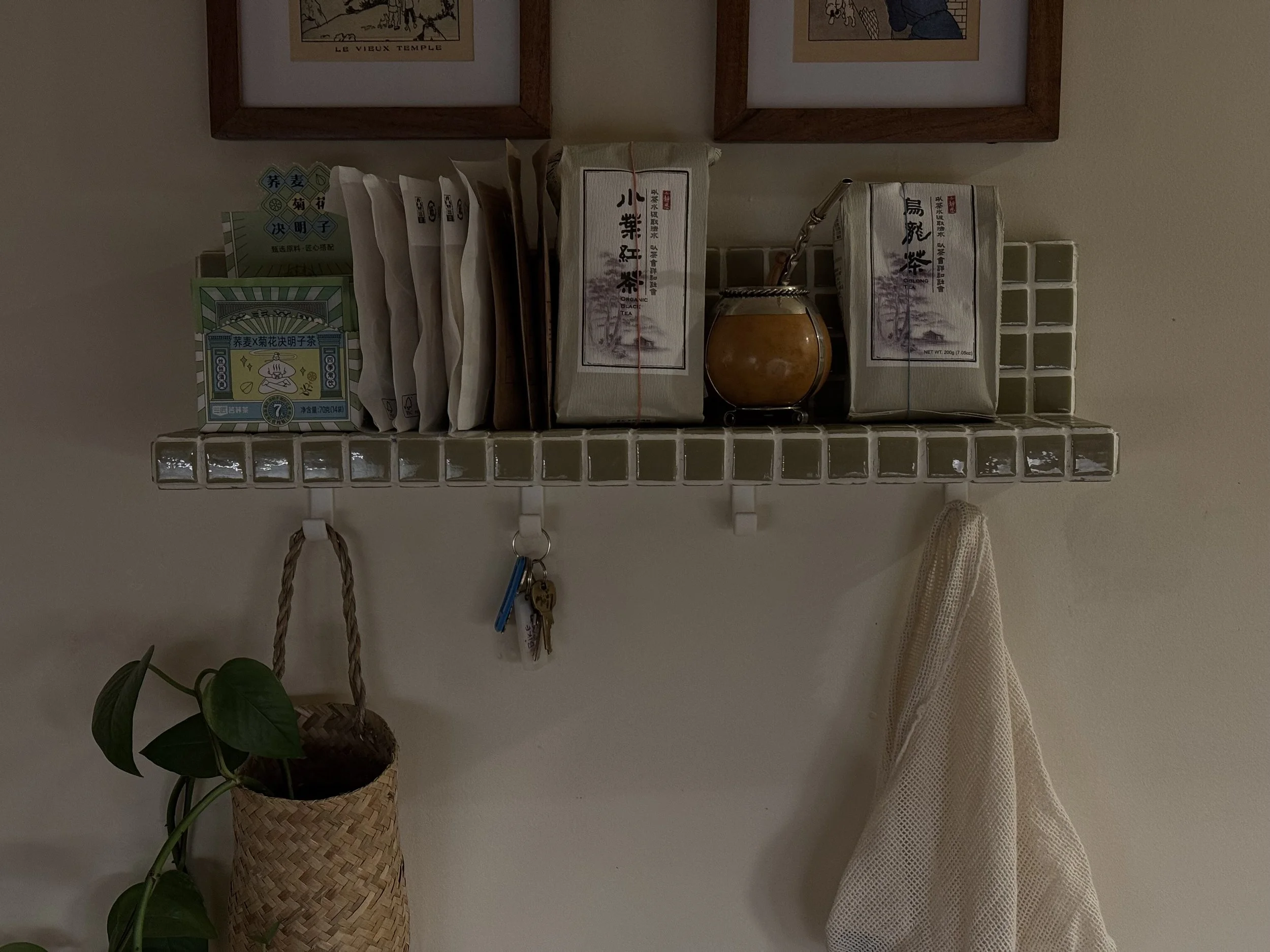 I use the tile shelf in my kitchen as a space for teas and hanging objects. I have made a few other smaller sizes for friends and family as gifts.